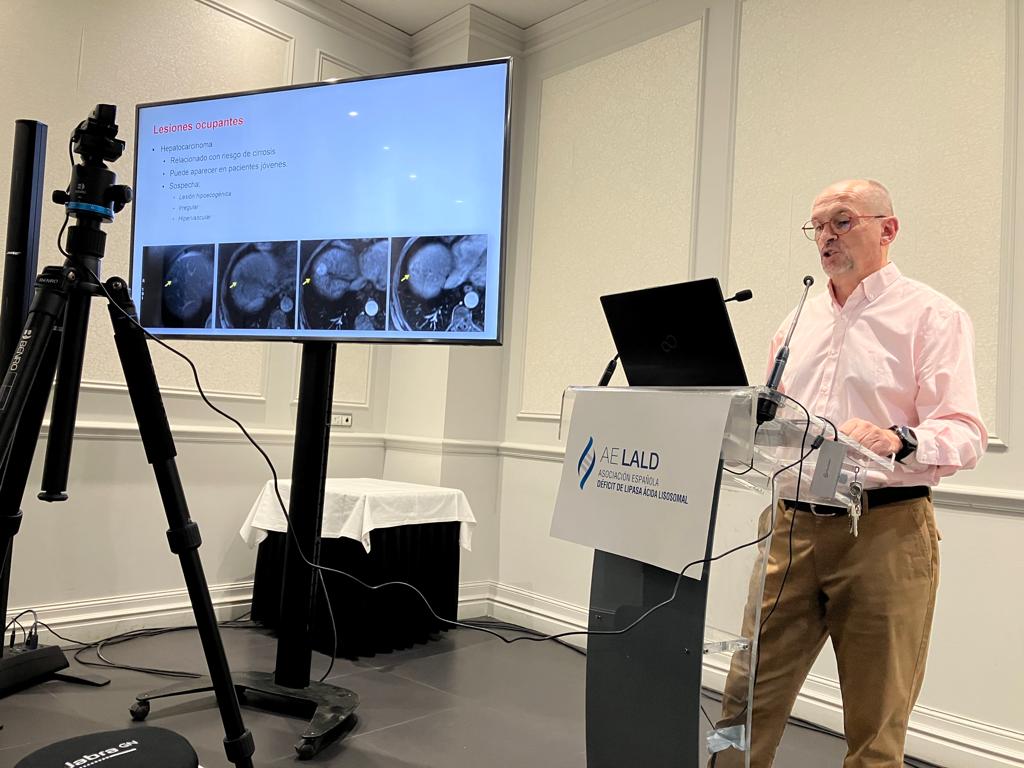 El Dr. Pedro Valdivielso, perteneciente al Servicio de Medicina Interna del Hospital Universitario Virgen de la Victoria de Málaga y Catedrático de Medicina en Universidad de Málaga, realizó una presentación con el título Hipercolesterolemia Familiar vs. LAL-D.